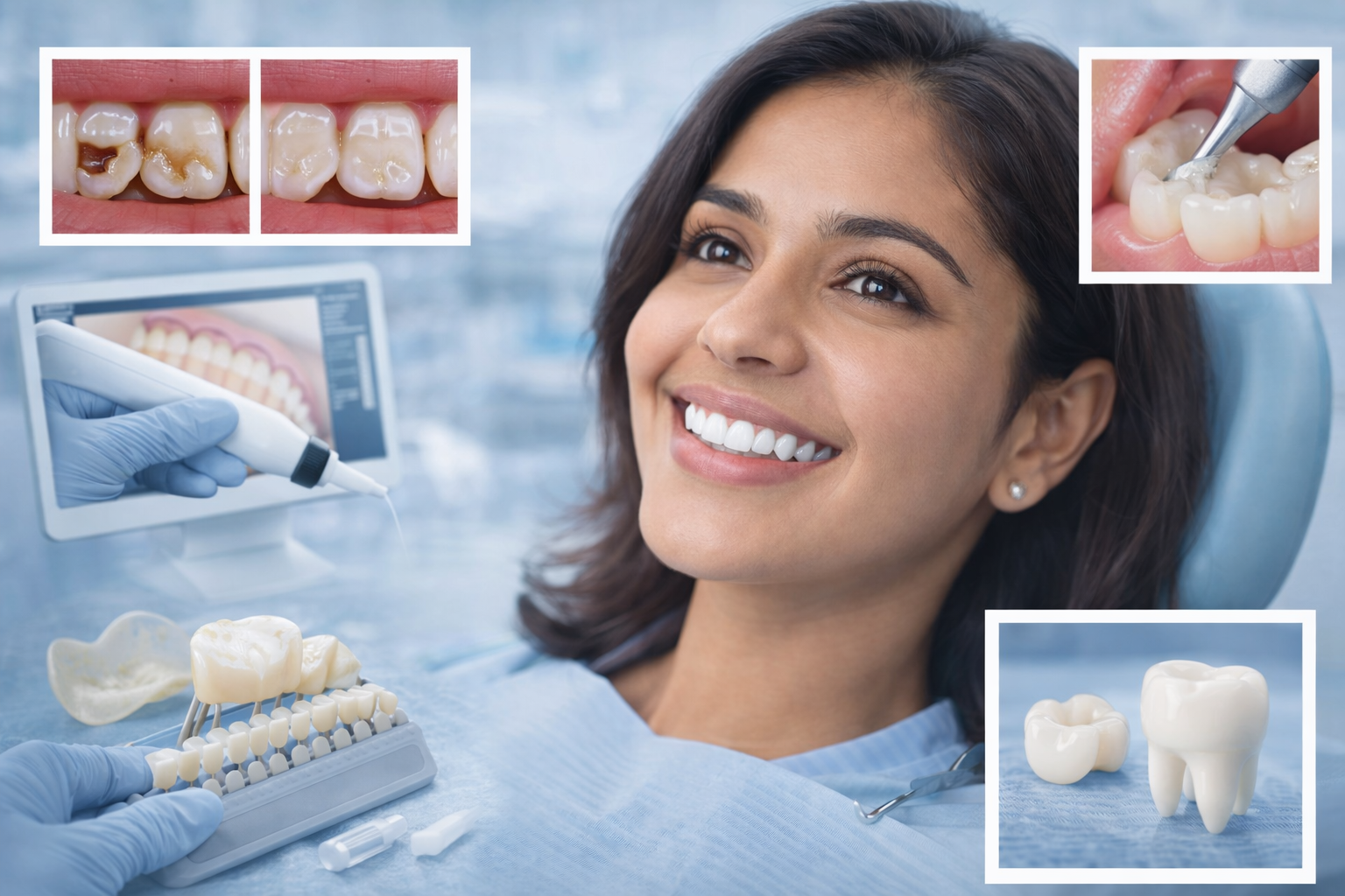 At Gentle Dental Care Kalyān, Dr. Deepika Dalal provides comprehensive restorative dentistry using the latest materials and techniques. We offer composite fillings that bond directly to your teeth, porcelain crowns that provide exceptional strength and beauty, and precision-crafted inlays and onlays for larger restorations. Our digital impression technology eliminates uncomfortable traditional molds, making the restoration process more comfortable and accurate. We work with skilled dental laboratories to create custom restorations that fit perfectly and look completely natural. Every restoration is carefully designed to restore proper bite function while maintaining or enhancing your smile's appearance. We take time to explain your treatment options, answer your questions, and ensure you're comfortable throughout the entire process.